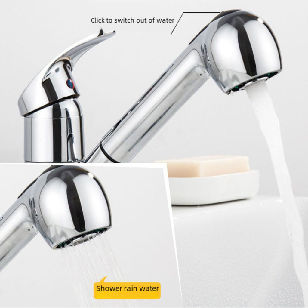 - Doble función de salida de agua: La boquilla desplegable ofrece dos modos de flujo, columna de agua y modo ducha, que satisfacen diversas necesidades y mejoran la eficiencia en la cocina.