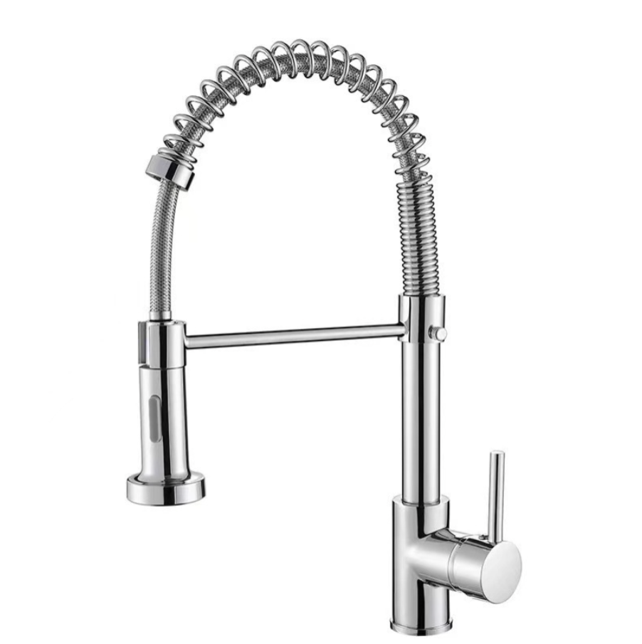 Grifo para Fregador de Cocina con resorte extraible, Metal brillante