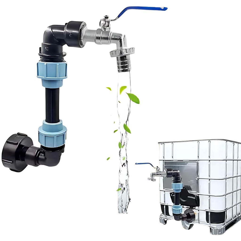 Kit Grifo Elevado para Tanque IBC 1000L con Válvula. Llave de rosca con Adaptador S60x6 y Tubo de 25cm.