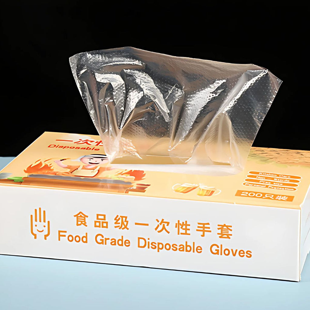 Guantes Desechables Transparentes. Caja de 200 Piezas. Talla Única, Resistentes y Seguros para Cocina, Limpieza y Uso General.