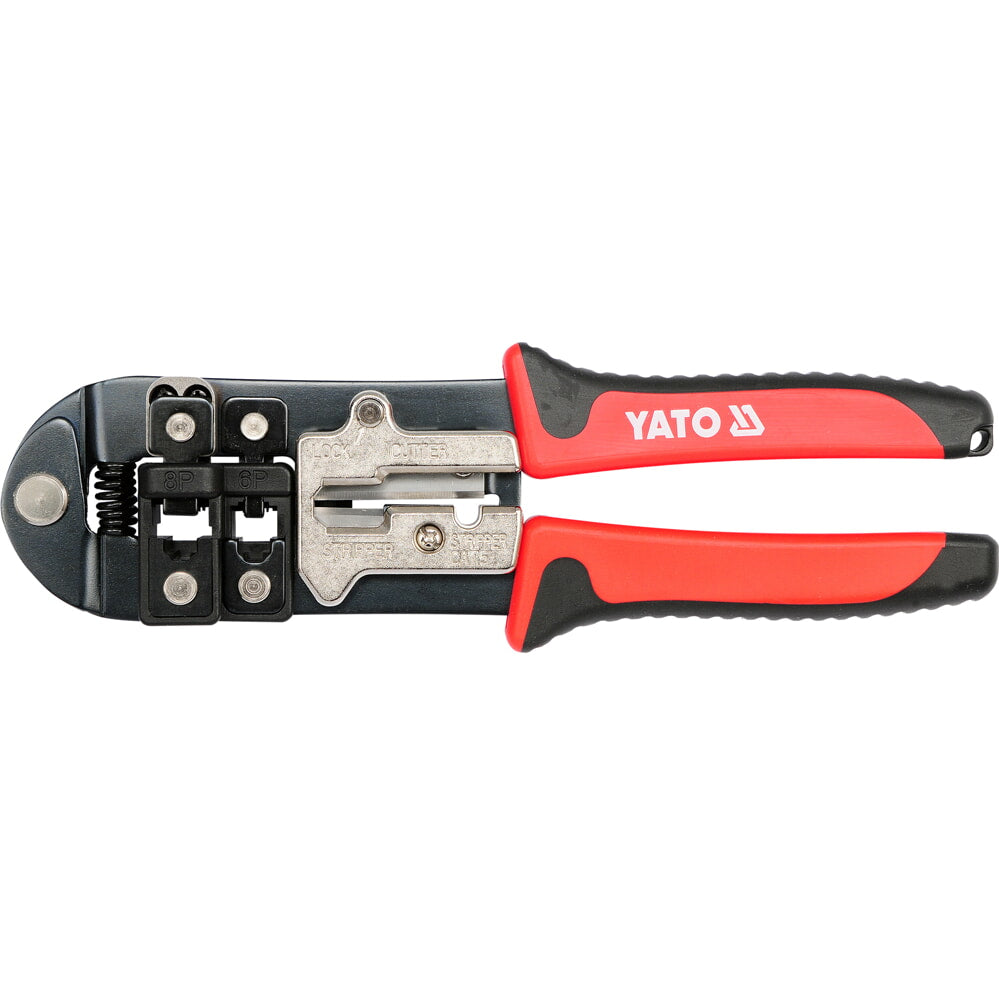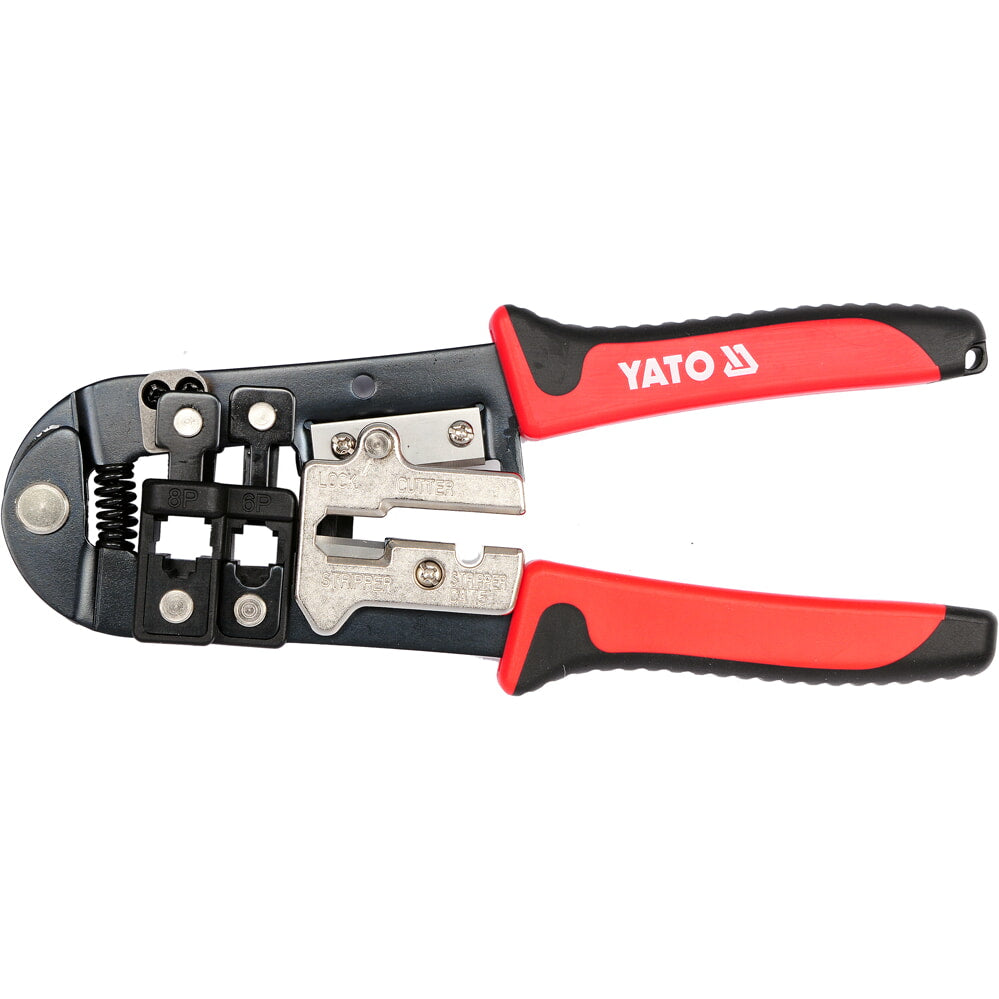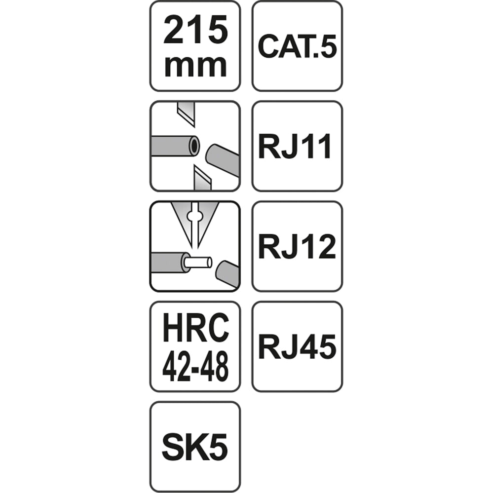 DE ACERO AL CARBONO; ESPESOR: 3,2 MM; LONGITUD 195 MM; DUREZA: 42-48 HRC; PROTECCIÓN ANTICORROSIÓN; AGARRE TPR; 240 G; CUCHILLA DE CORTE SK5 / CAT.5 PELADO / PELADO, ENGARZADO PARALELO 6P 8P (RJ11 / RJ12 / RJ45) - INTERCAMBIABLE