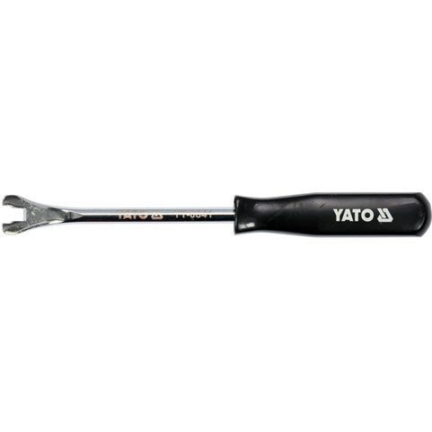 Yato Herramienta Para Retirar La Tapiceria De La Puerta. Longitud Total: 230 Mm; Peso: 132 Gramos; Diametro De Barra: 9 Mm; Parte De Trabajo: Ancho: 18 Mm, Diametro Interno: 9 Mm, Profundidad: 13 Mm; Forma: Angulo; Material: Acero Al Carbono; Tratamien