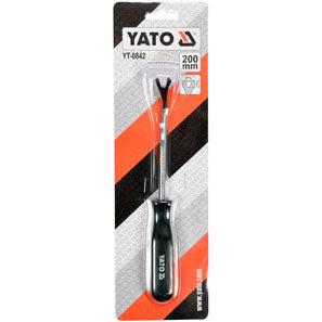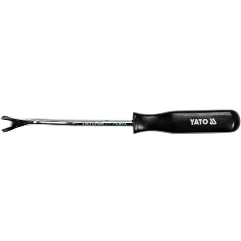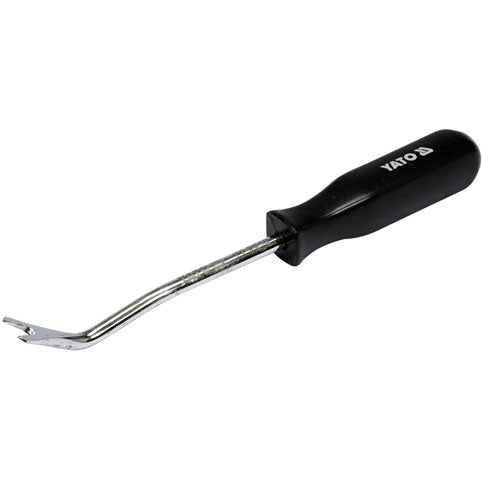 Yato Herramienta Para Retirar La Tapiceria De La Puerta. Longitud Total: 200 Mm; Peso: 63 Gramos; Diametro De Barra: 6Mm; Parte De Trabajo: Ancho: 14 Mm, Diametro Interno: 8 Mm, Profundidad: 10 Mm; Forma: Angulo; Material: Acero Al Carbono; Tratamiento