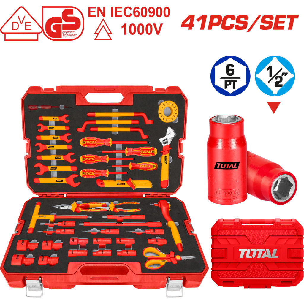 | Características | Certificación 1000V para electricistas Incluye Set de 41 piezas. (alicates , destornilladores , casquillos , llaves , barras , trinquete , entre otros) |