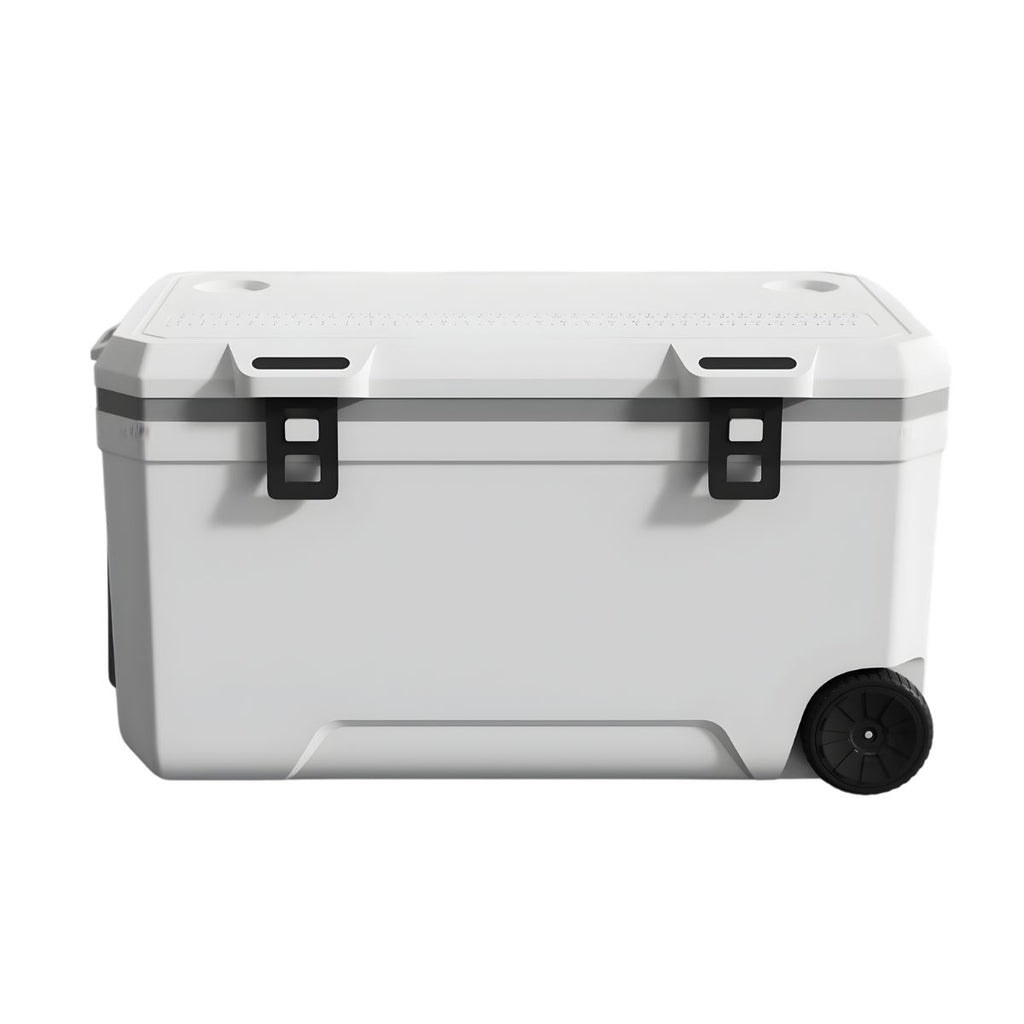 Hielera portátil rígida 127QT (120L) con ruedas Color Blanco Cooler grande 94x55x50 cm para camping, pesca y playa