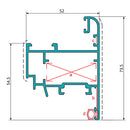 Hoja Ventana Abatible 52x65 mm Apertura Exterior. Espesor 1.4 mm. Largo 5.85 mts. Acabado Anodizado Silver 15 Micron.