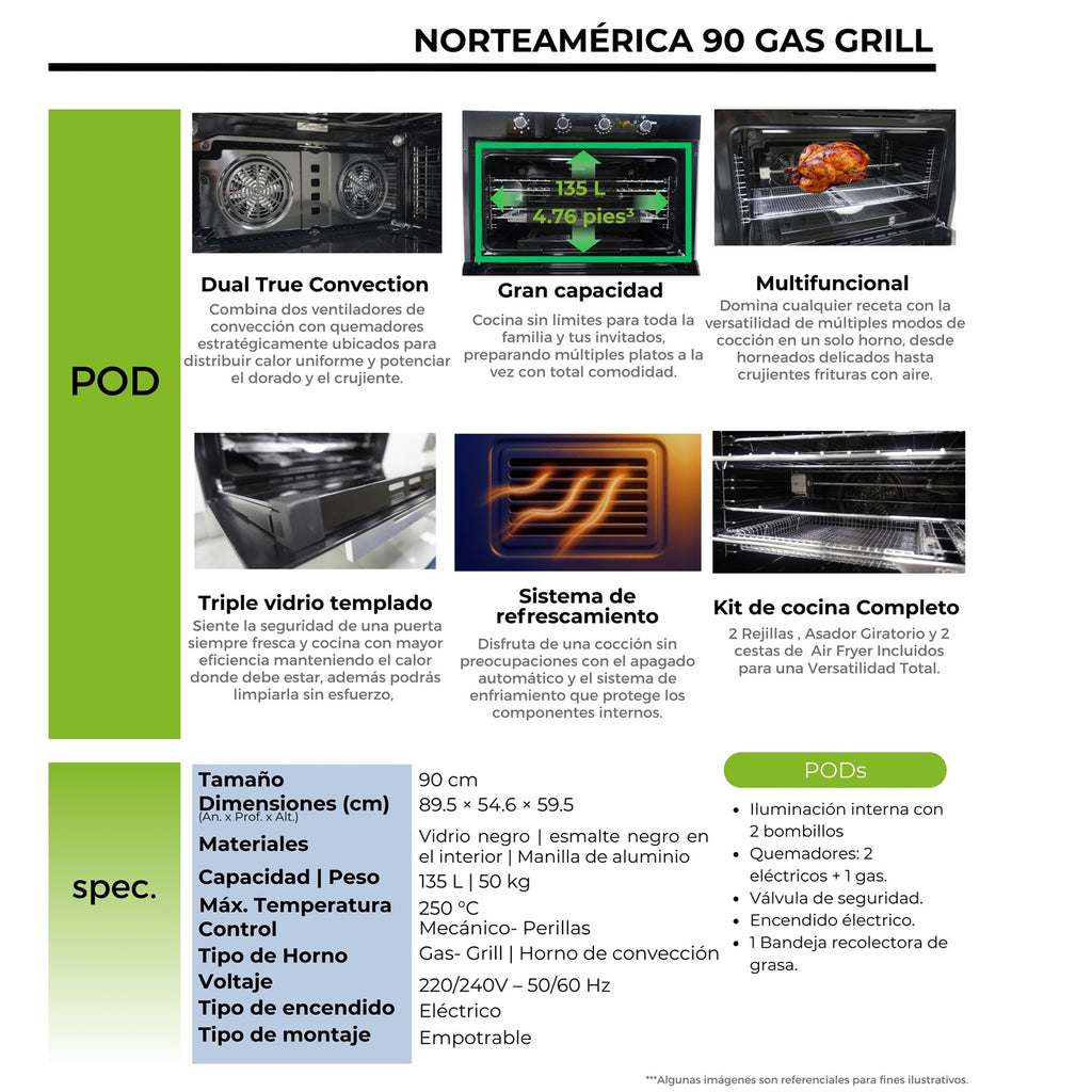 Horno a Gas Empotrable. Modelo Norteamerica 90