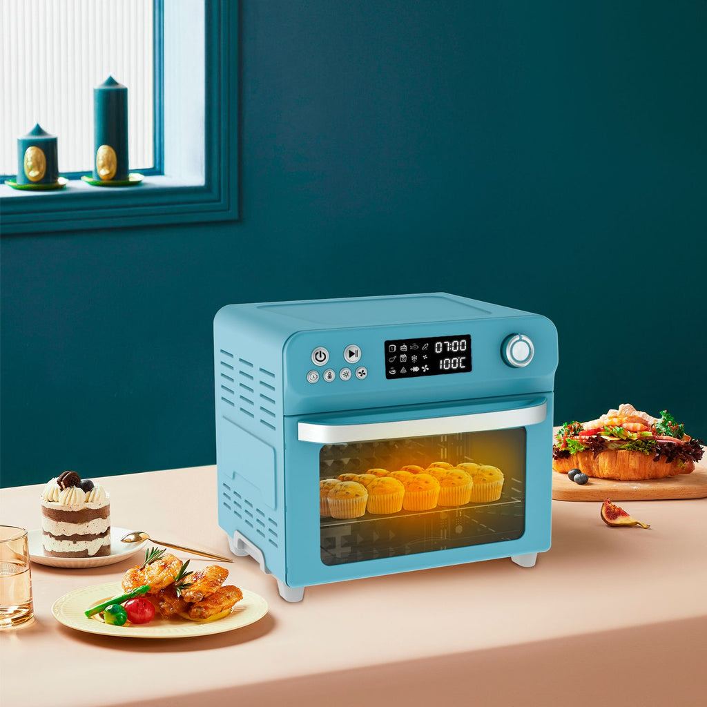 Buen precio x su capacidad, color combinable, lo único que la bandeja para air frying reposa sobre el rack del horno lo que te limita la cocción de otros alimentos, pero en sí es un buen artículo. Ah y para apagarlo debes presionar el botón de on/off x 3 secs les digo para que no se asusten.