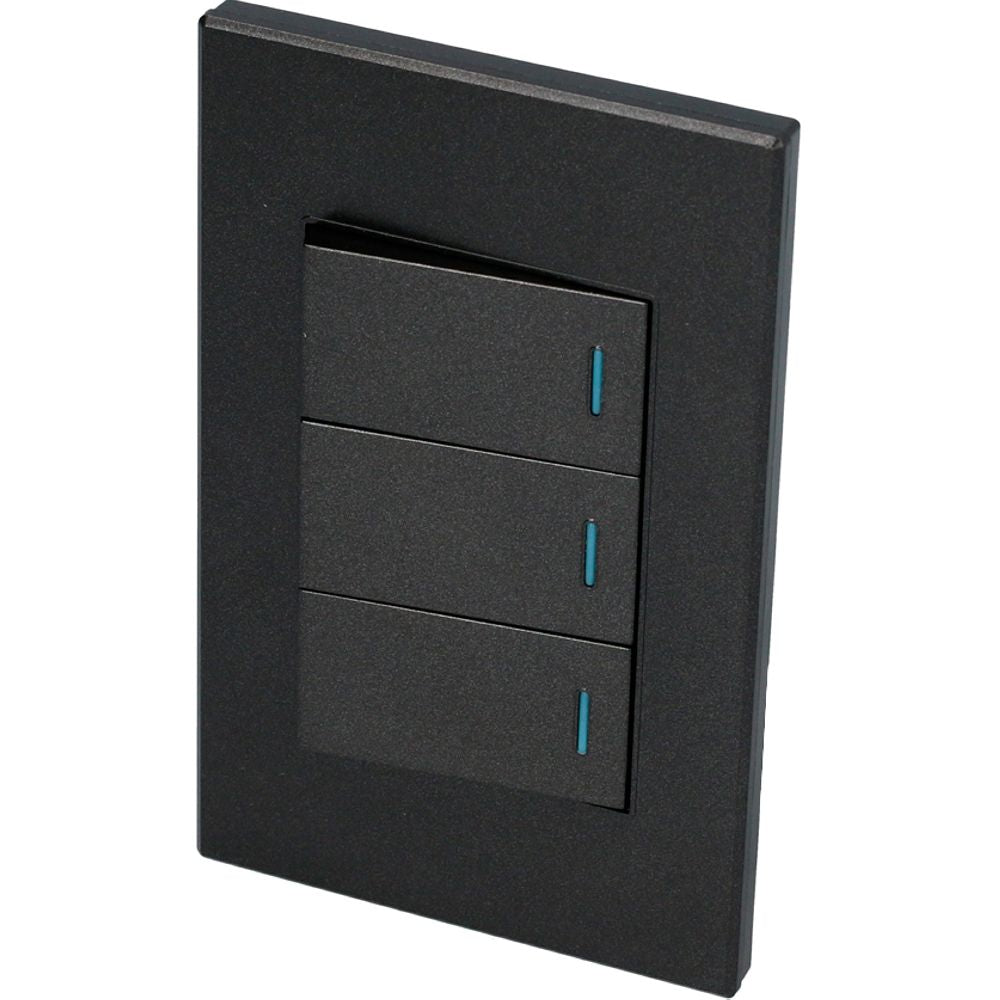 | *Nombre | Interruptor con 3 apagadores negro 1/3 . |