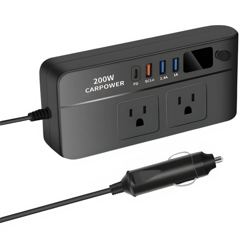 - Potencia máxima de 200W, apto para laptops, cargadores, cámaras, ventiladores pequeños y más.