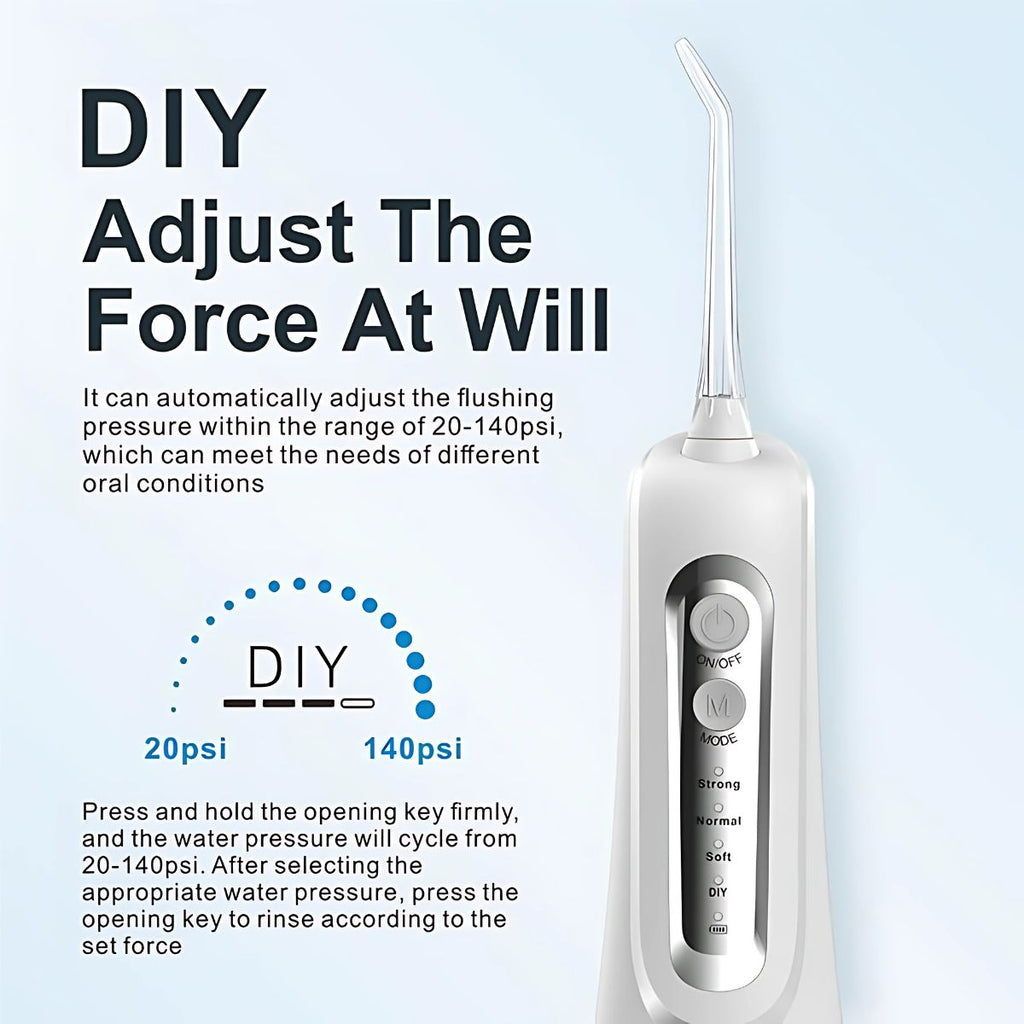 Irrigador Bucal Portátil de 4 Modos con Tanque de 330 ml y Boquillas Intercambiables. Limpieza profunda.