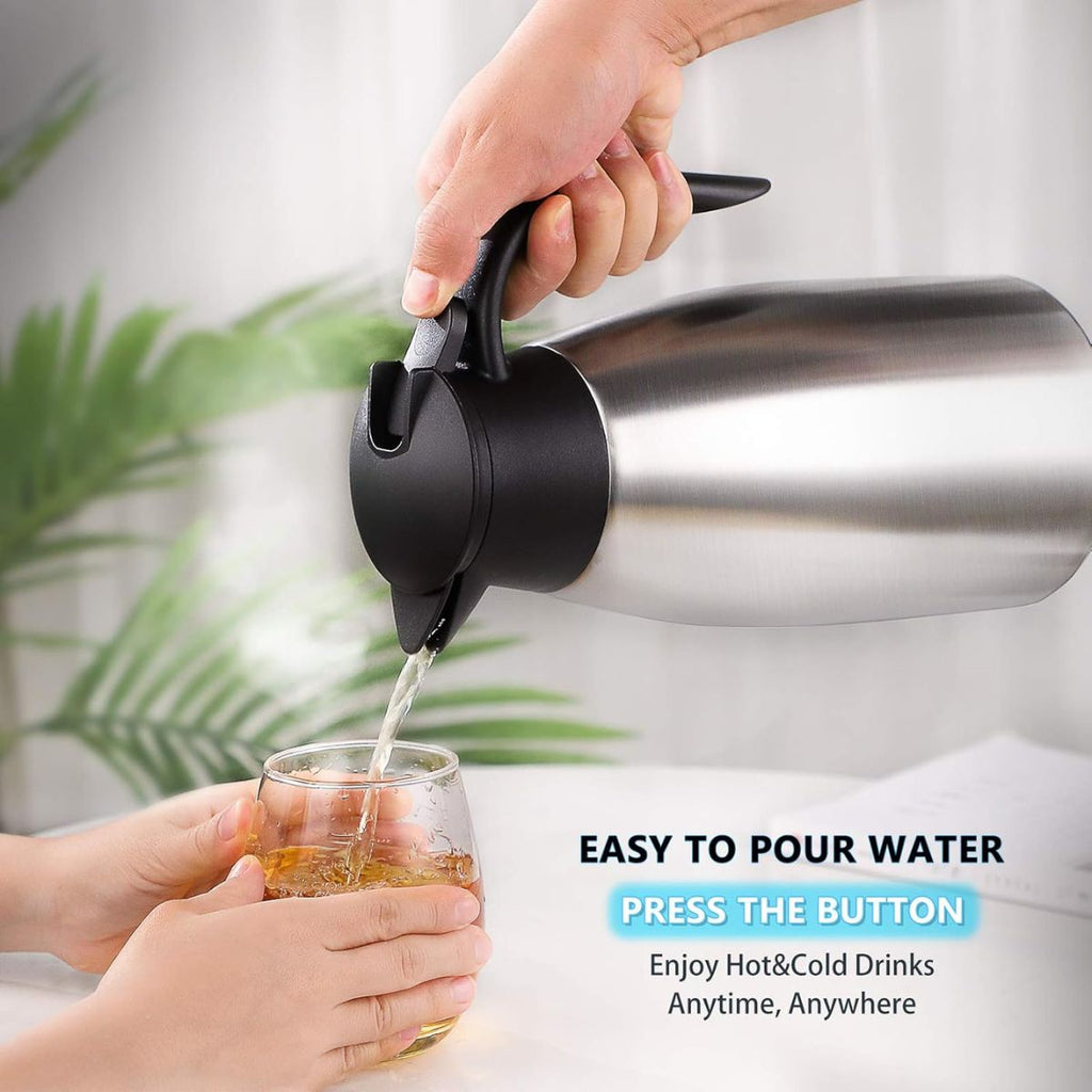 Jarra térmica de café 68oz. (2lts) Termo de acero inoxidable. Conserva Bebidas Calientes 12h y Frías 24h.
