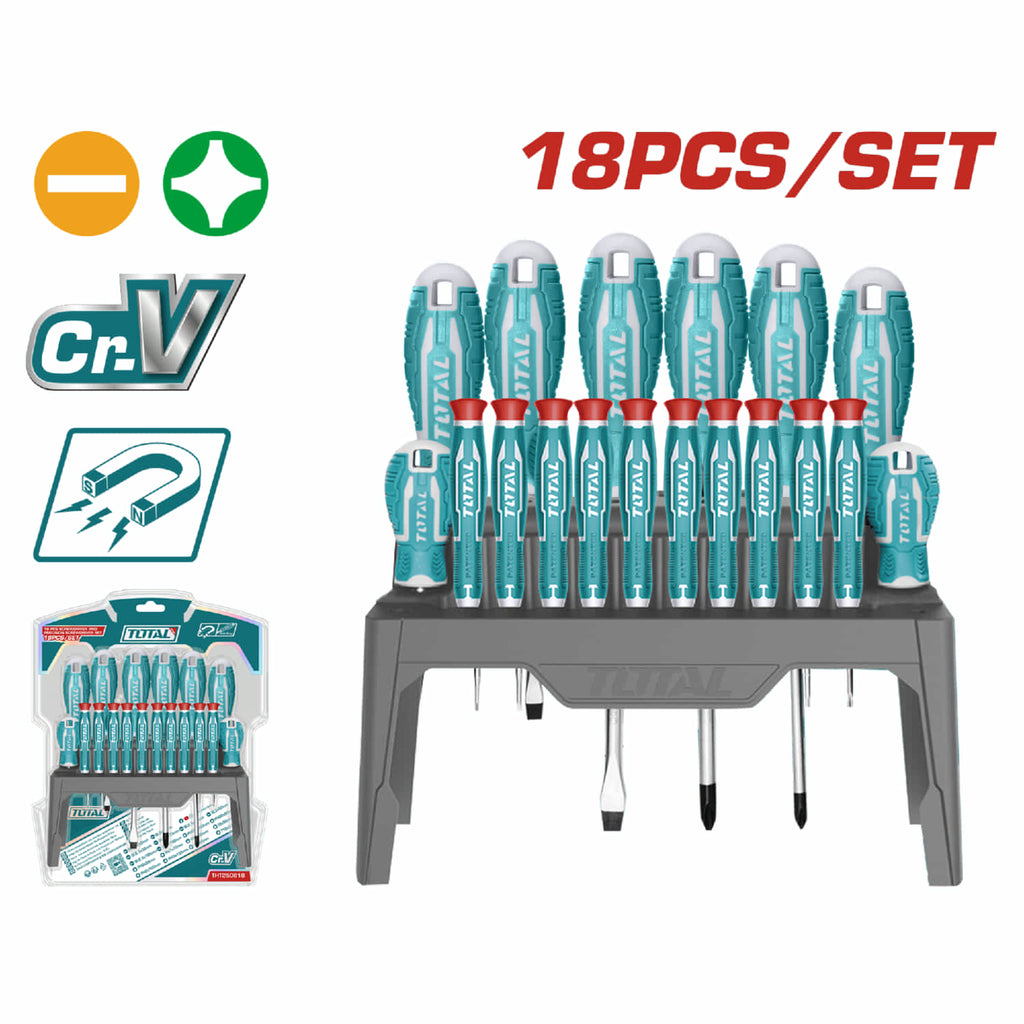 Juego de 18 piezas de destornilladores regulares y de precisión.