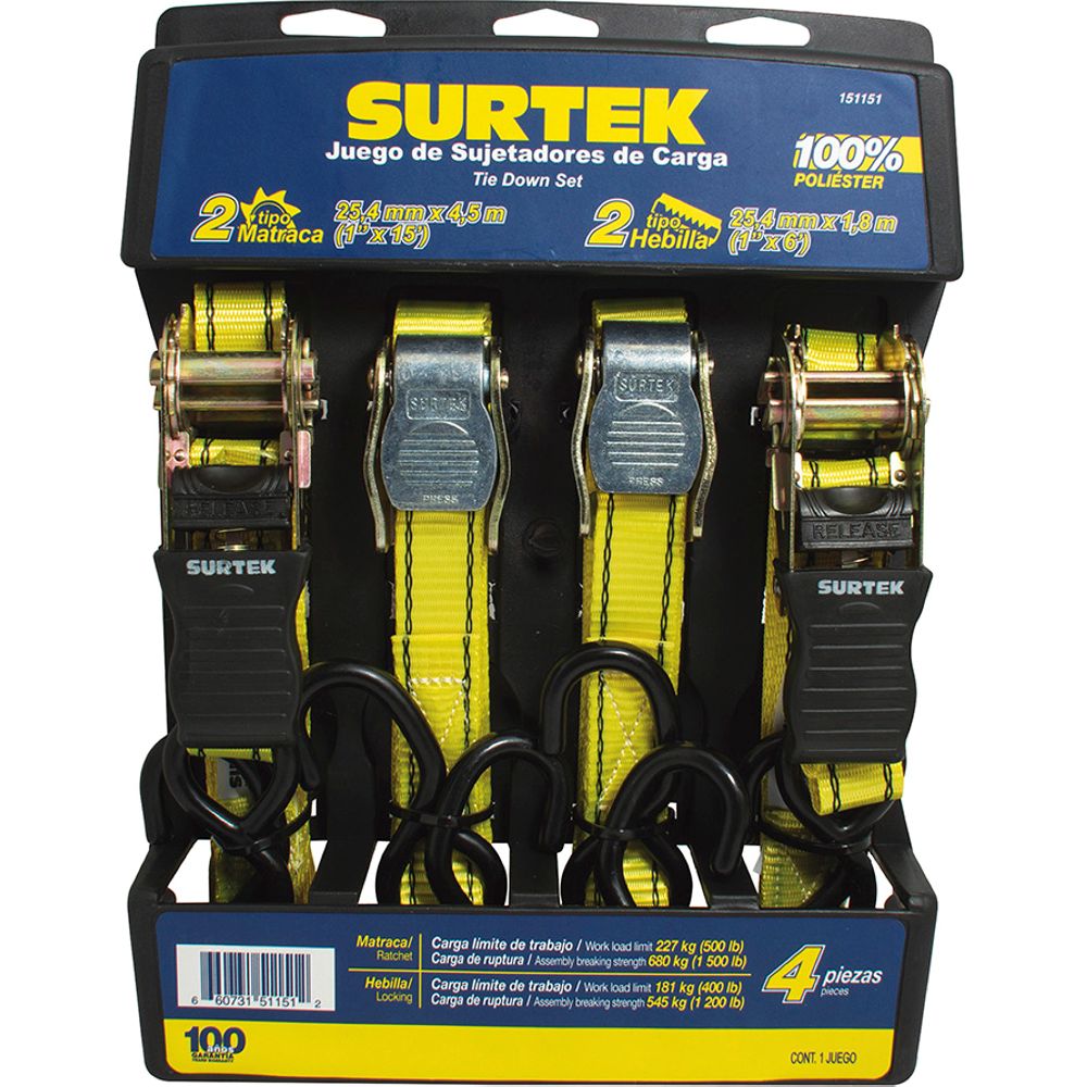 -Juego de 4 sujetadores tipo matraca y hebilla Surtek