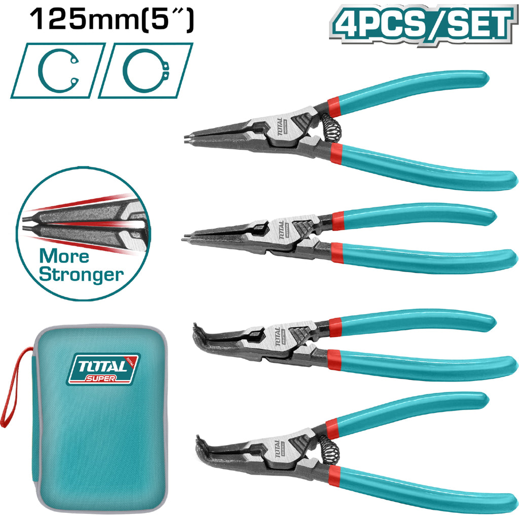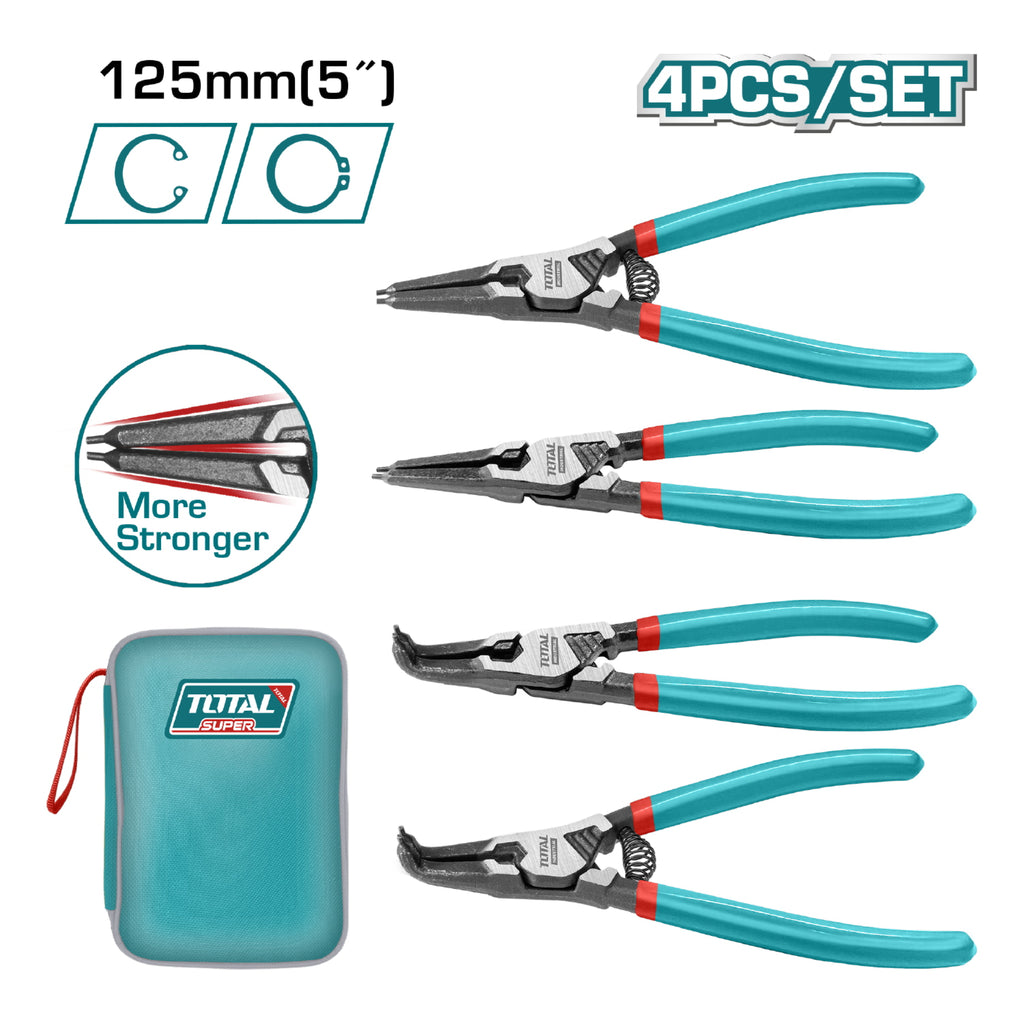 Juego de Alicates para Anilllos de Retencion de 5''/125 mm de 4 piezas. Diametro: 1.8 mm. Acero Inoxidable. Incluye: 2 Alicates de 180° y 2 Alicates de 90°.