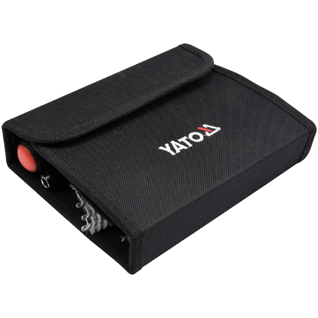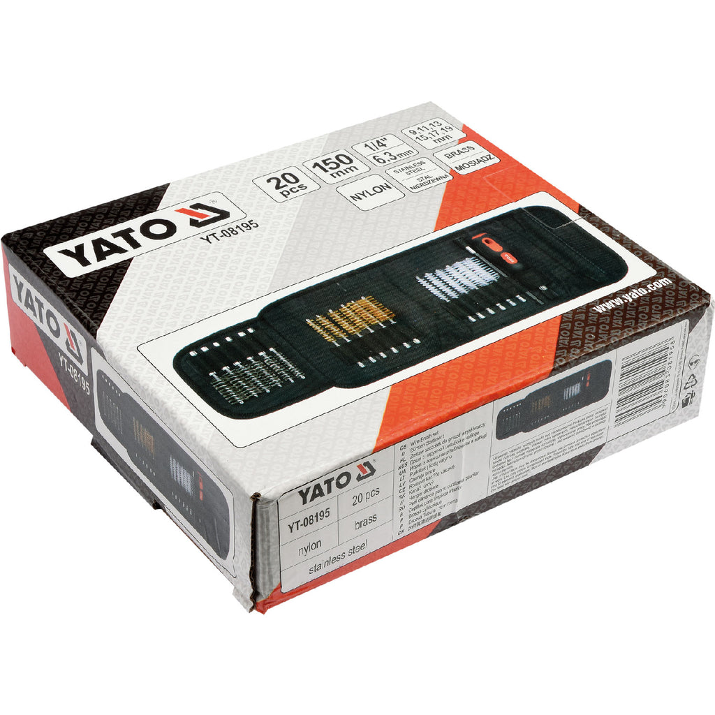 Yato Juego De 20 Piezas De Brochas De Alambre. Brochas De Laton: 6 Piezas; Brocha De Acero Inoxidable: 6 Piezas; Brocha De Nylon: 6 Piezas; Extension Con Rapida Liberacion Para Uso De Herramienta Electrica 150 Mm; Mango De Agarre Suave Para Rapida Libe