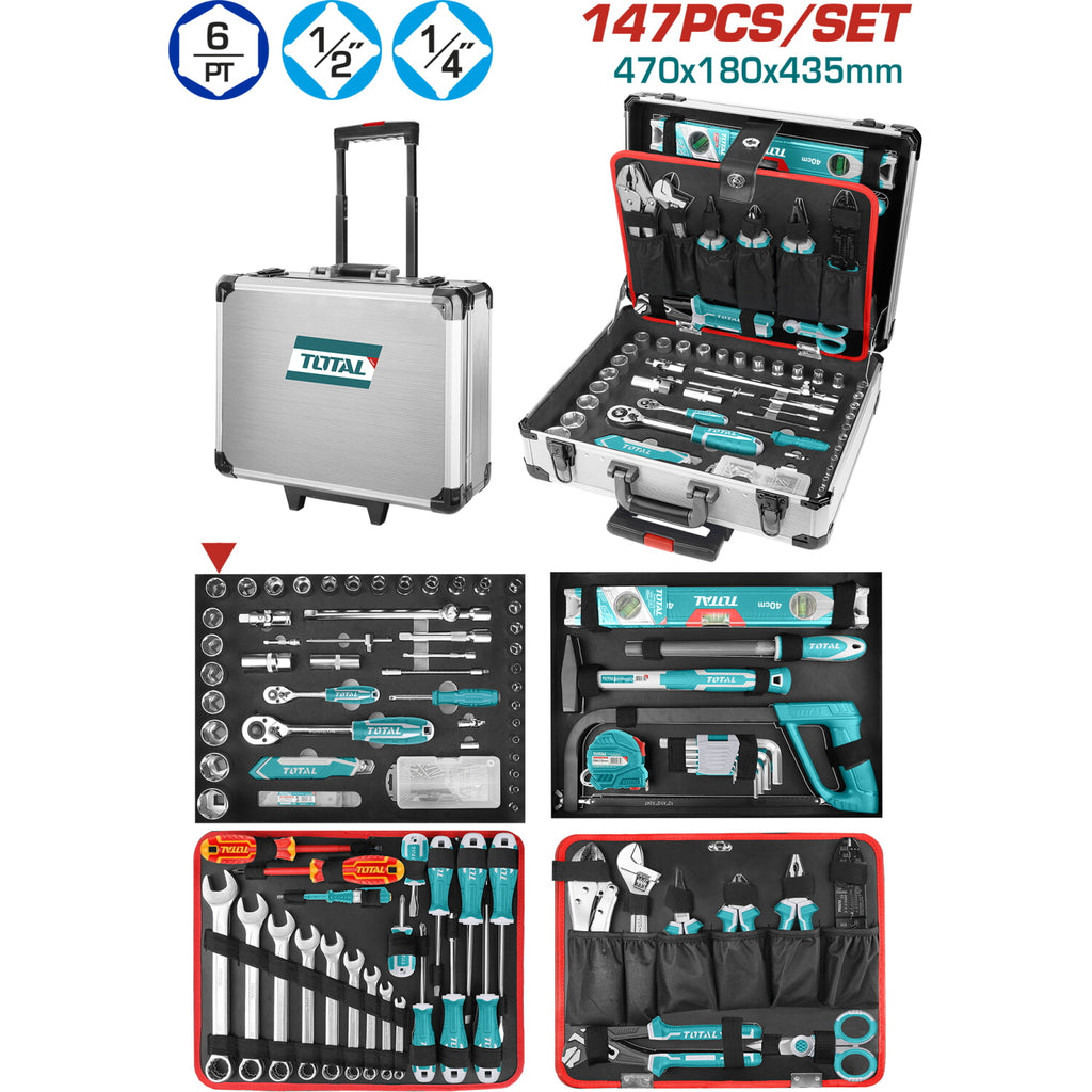 Juego de herramientas de 147 piezas en maletín de aluminio.