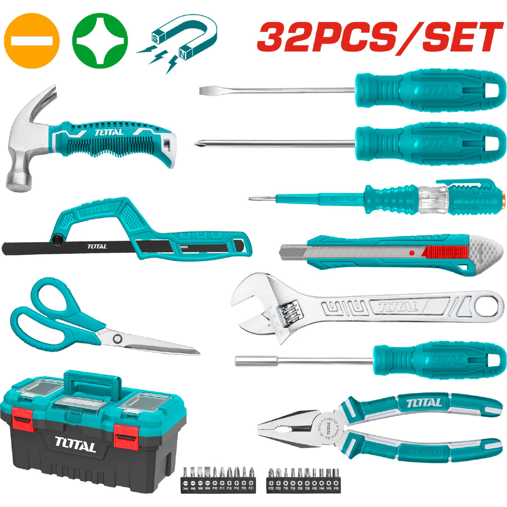 | *Nombre | Juego De Herramientas en caja TOTAL (32 Piezas). |