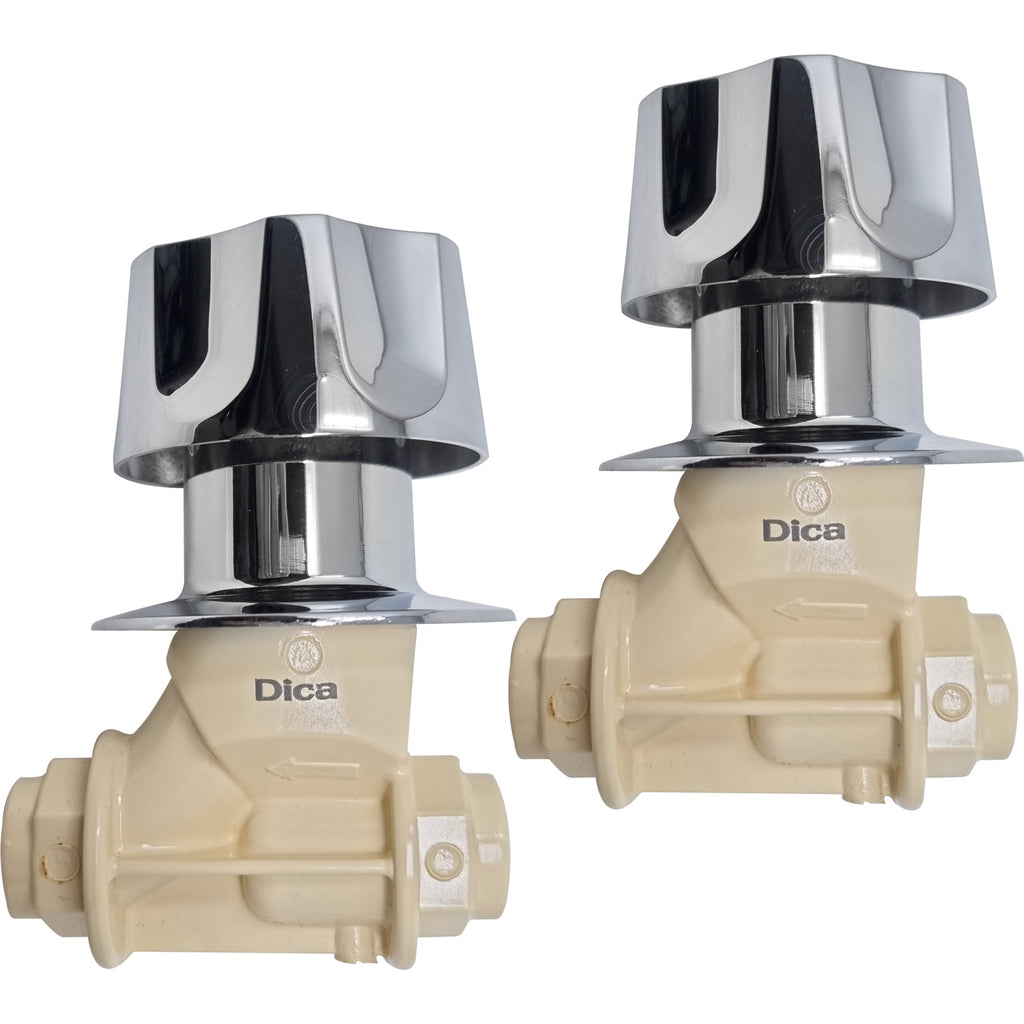 El empaque incluye dos llaves de empotrar (derecho e izquierdo) con manerales y chapetón metálicos cromados