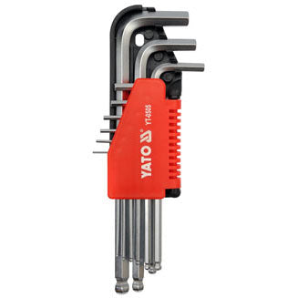 Yato Juego De Llaves Hexagonales Con Punta Redonda (1.5 - 10 Mm), 9 Piezas: 1.5, 2, 2.5, 3, 4, 5, 6, 8, 10 Mm, Longitud Media, Con Punta Redonda, Material: Crv 6150, Acabado Satinado, Sujetador Plastico, Hrc 52-56 Juego De Llaves Hexagonales, Llaves Al