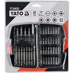 Yato Juego De Puntas De Destornillador (45 Piezas, 25 Mm) Plana: 3 Mm, 4 Mm, 5 Mm, 6 Mm, 7 Mm, Cuadrada: S1, S2, S3, Hexagonal: H2, H2.5, H3, H4, H5, H5.5, H6*2 Piezas, Pozidriv: Pz0, Pz1, Pz2, Pz3, Torx: T8, T10, T15, T20, T25, T27, T30, T40, Phillips