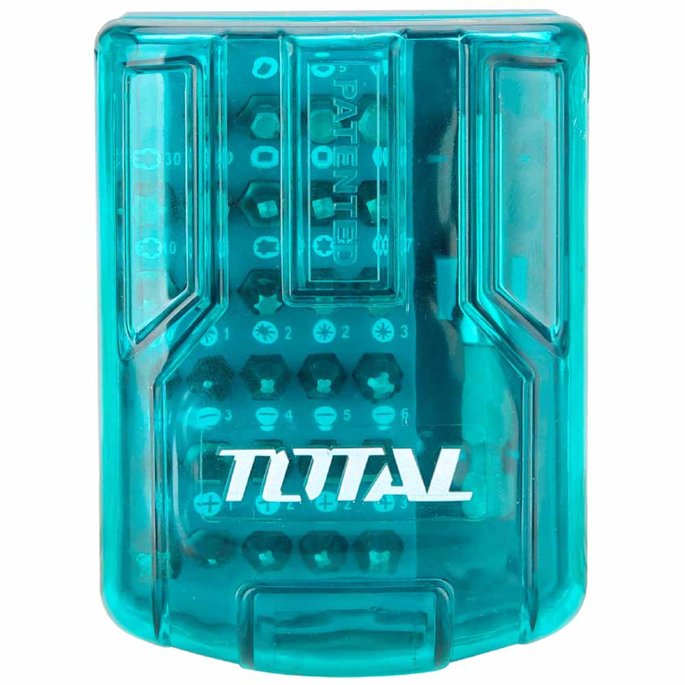 Juego puntas Destornilladores tipo broca. 25mm. 29 pzas. PZ0-1-2-2-3. PH0-1-2-2-3-4. SL3-4-5-6. T10-15-20-25-27-30-40. H3-4-5-6. S1-2-3. Con Soporte para colocar las piezas.
