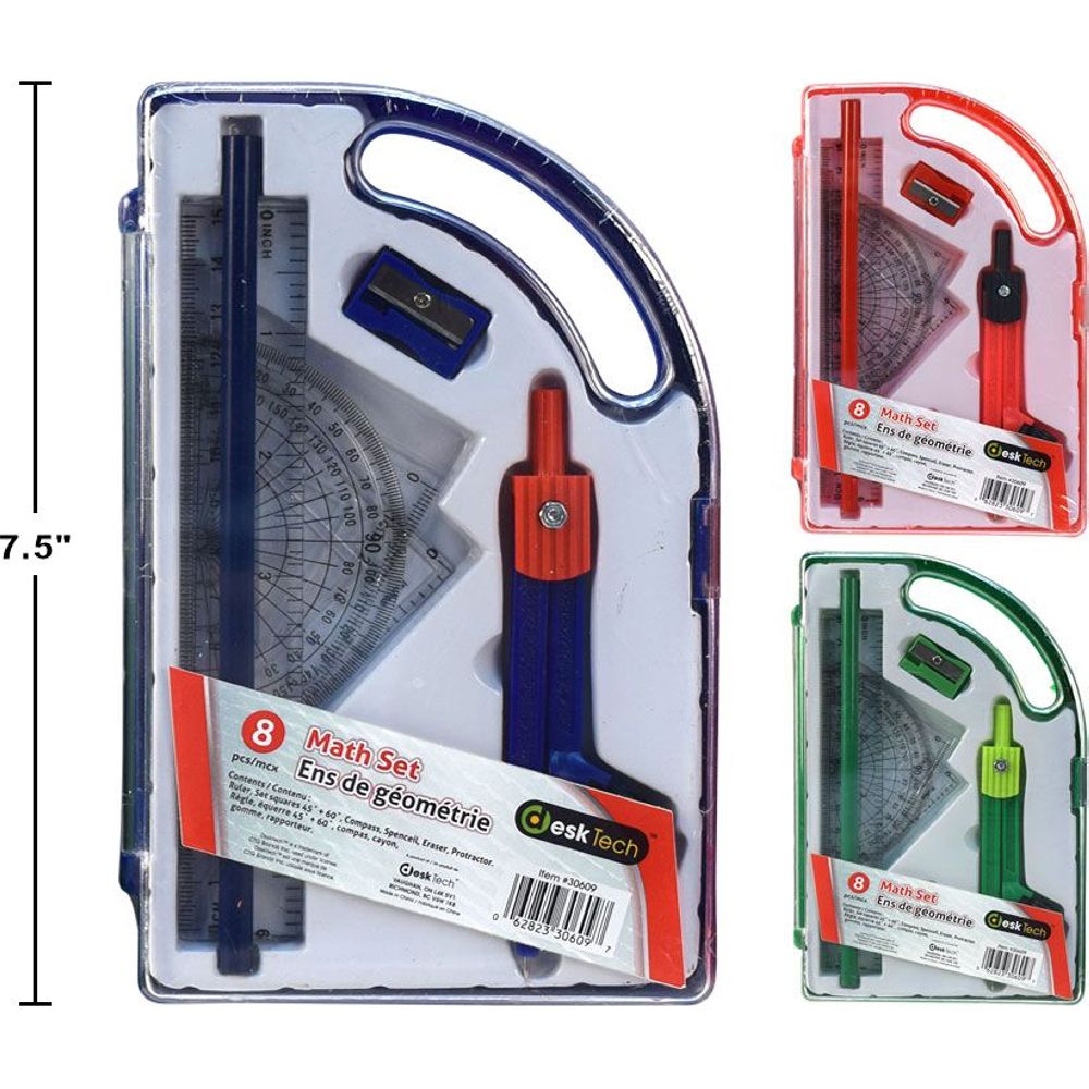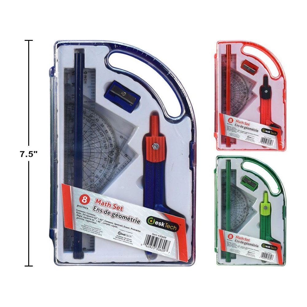 Juego matemáticas compas y escuadras 8 pza (1pza) (colores variados al azar)