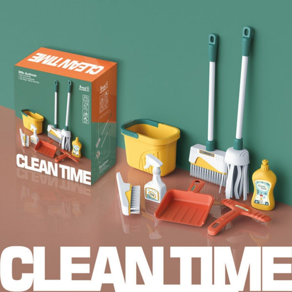 Juego De Herramientas De Limpieza Infantil. (Set de 8 piezas). Color Verde.