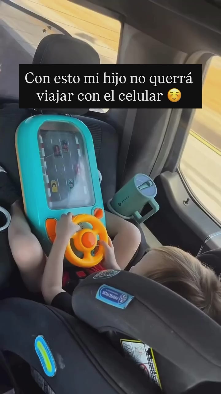 Juguete para niños. Mini Consola de Carreras Portátil con Volante y Carga USB.