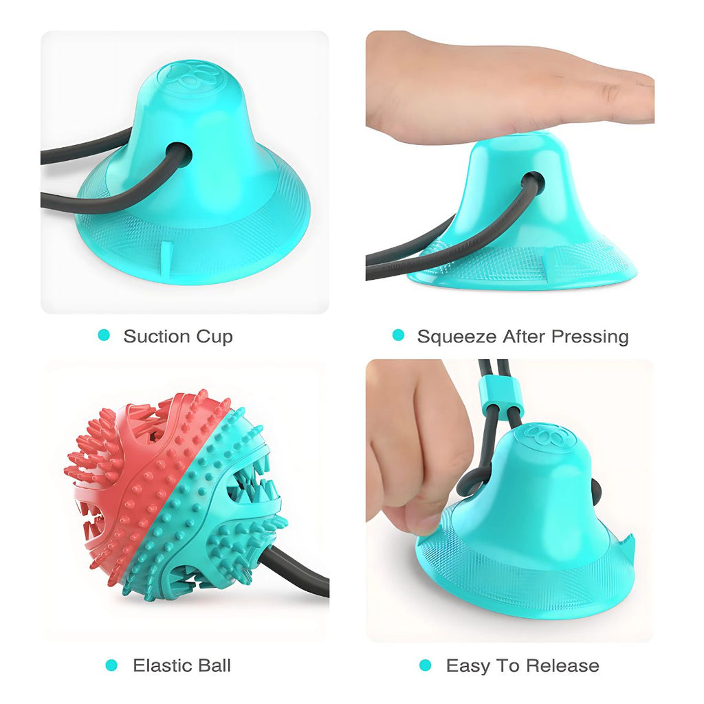 - Ventosa de alta resistencia que se fija a superficies lisas para juegos interactivos de tirar y morder.