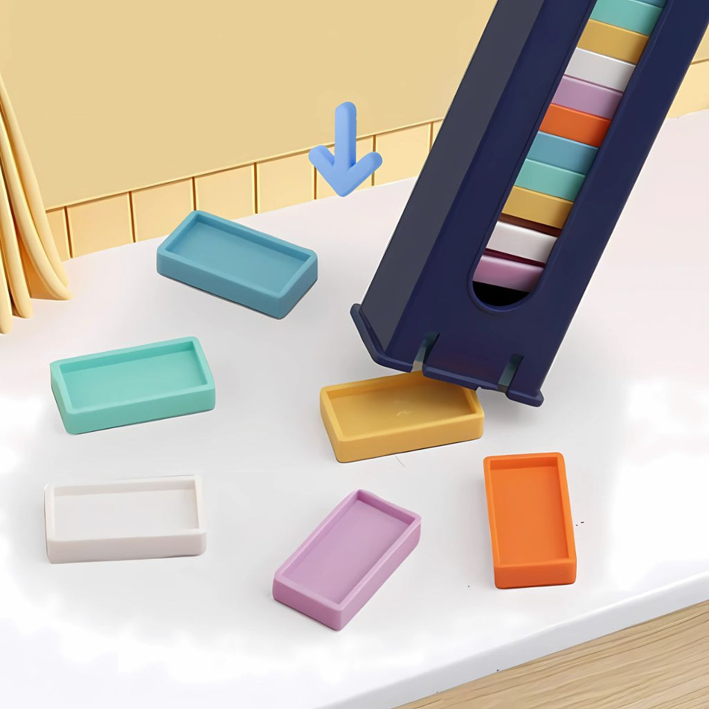 - Fácil de Usar: Coloca las fichas en la chimenea del tren, y este las distribuirá una por una mientras se mueve.