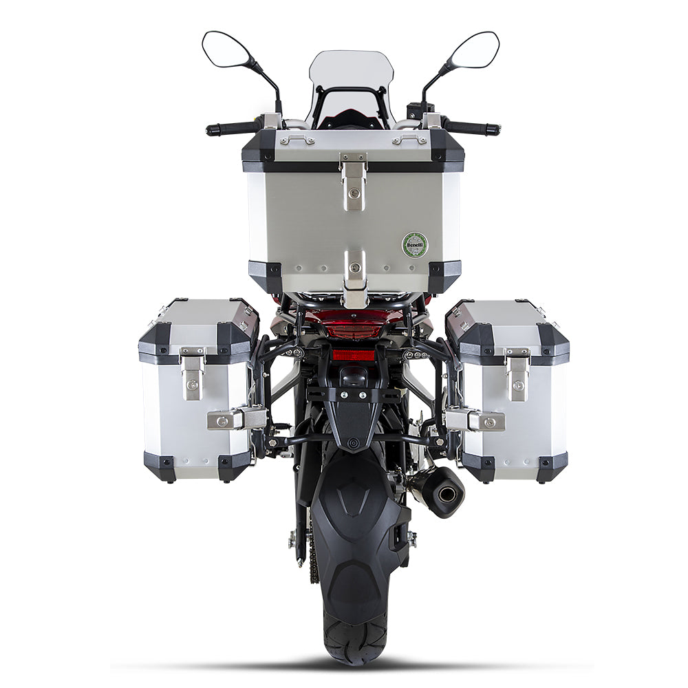 Kit de 3 Cajas TopCase+2SideCase modelo Benelli para TRK251 Color Aluminio incluye racks y sistema de anclaje actualizado