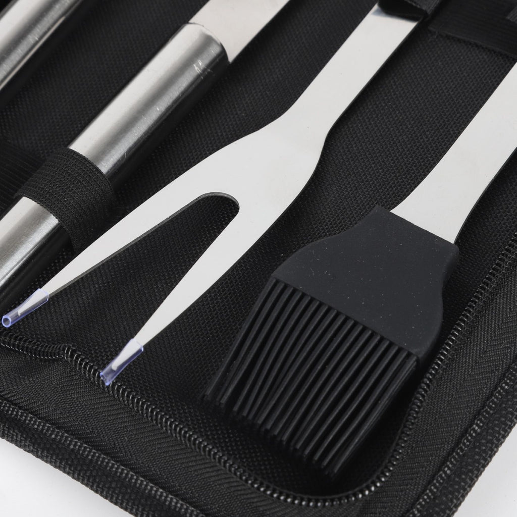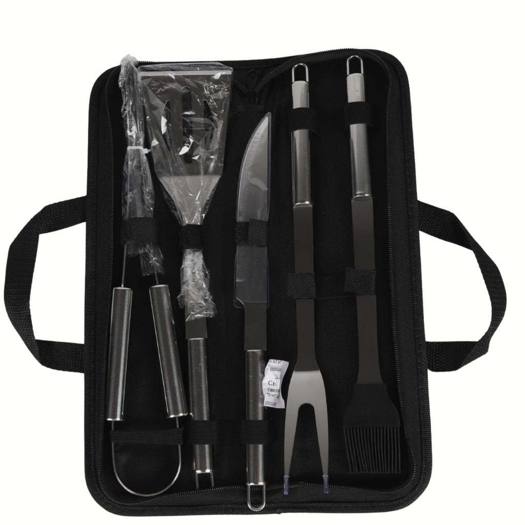 -Incluye tenedor de asado, espátula ranurada, cuchillo, pinzas y brocheta para un set completo.