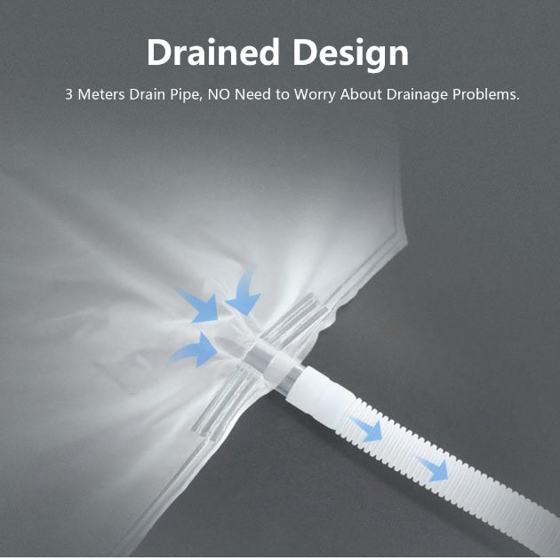Tamaño aproximado de 50cm/19,69 pulgadas. Amplia apertura es fácil de operar, a prueba de salpicaduras, lo que te libera preocupaciones al limpiar el aire acondicionado. Puede prevenir el proceso de salpicaduras de aguas residuales en la pared y en otros lugares.