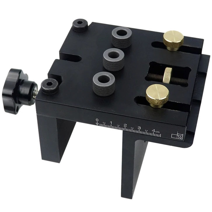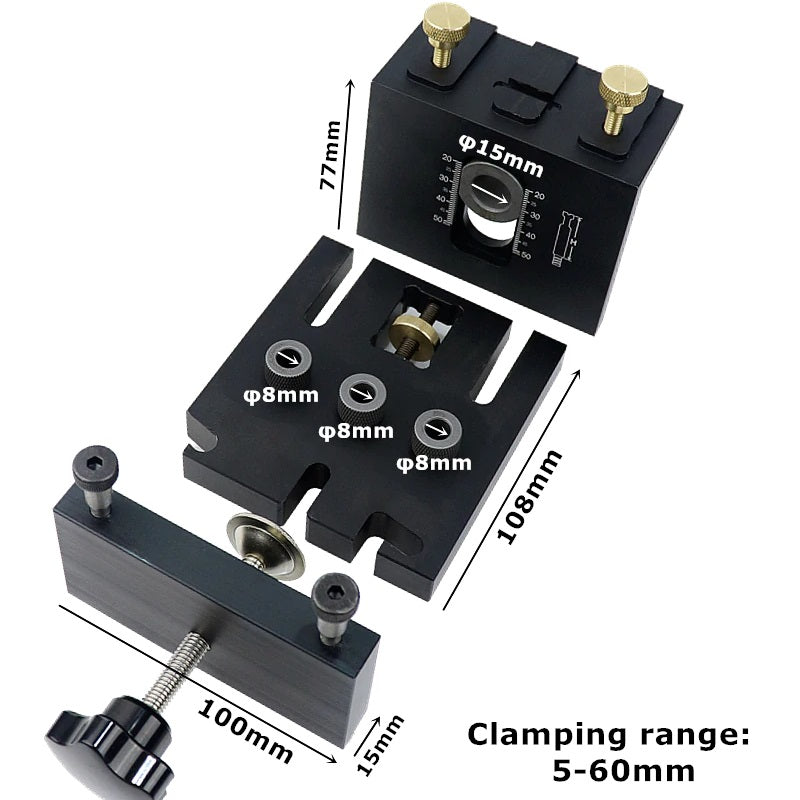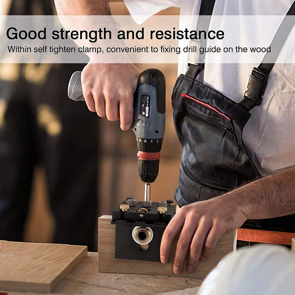 Set de plantilla guía multiusos ajustable para perforaciones de agujeros, para carpintería. Plantilla con clip de posicionamiento, guía de perforación ajustable, localizador de punzón. Incluye accesorios.
