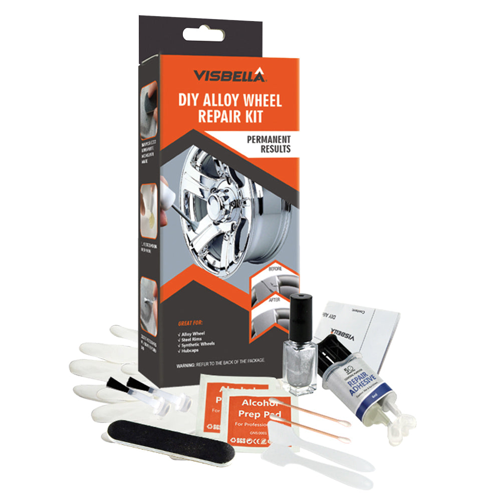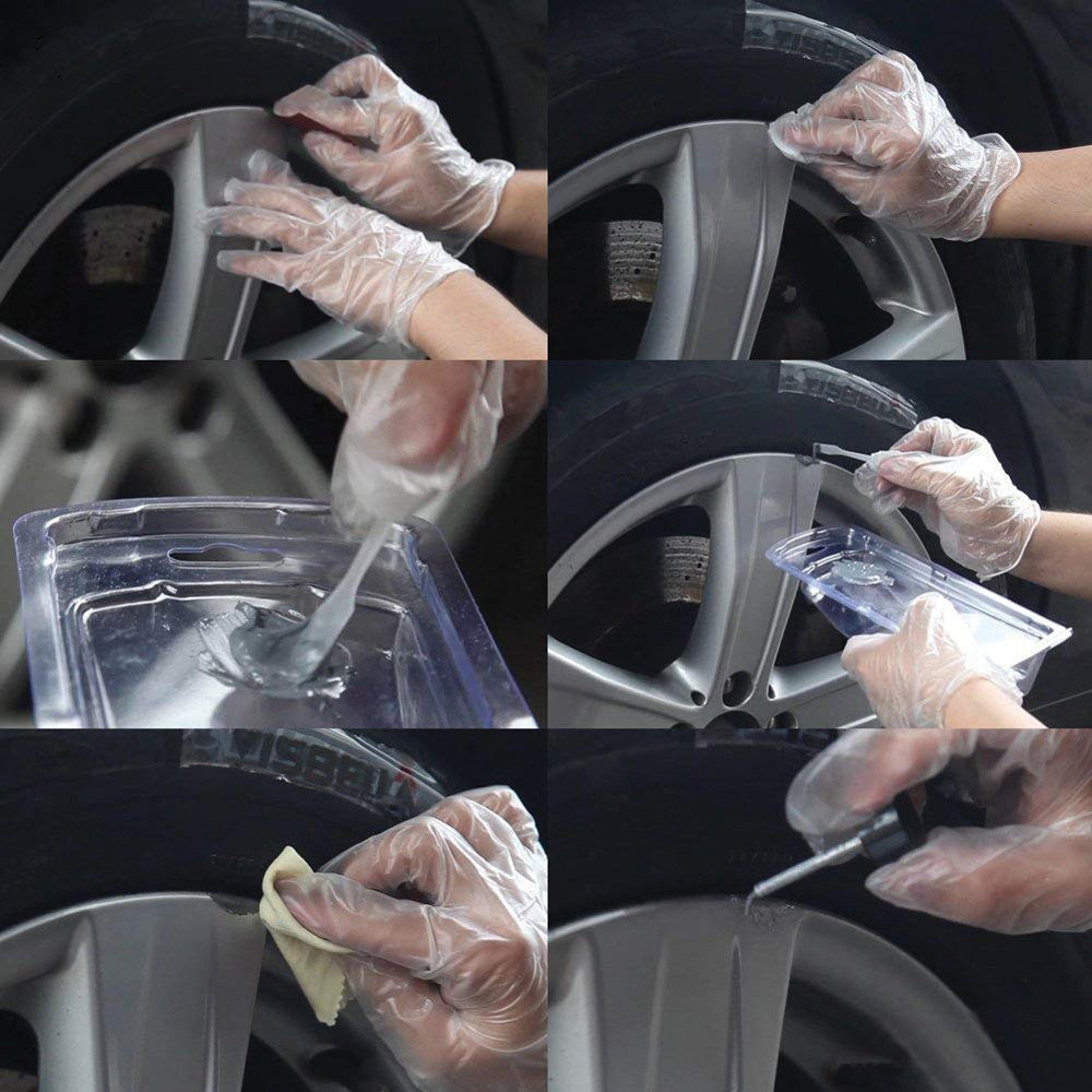 Kit de reparacion de ruedas. Repara permanentemente daños ocacionados con la acera, tales como rasguños, abolladuras leves, daños en la instalacion , marcas de lijado y otros tipos de dañosos en los aros de aleacion