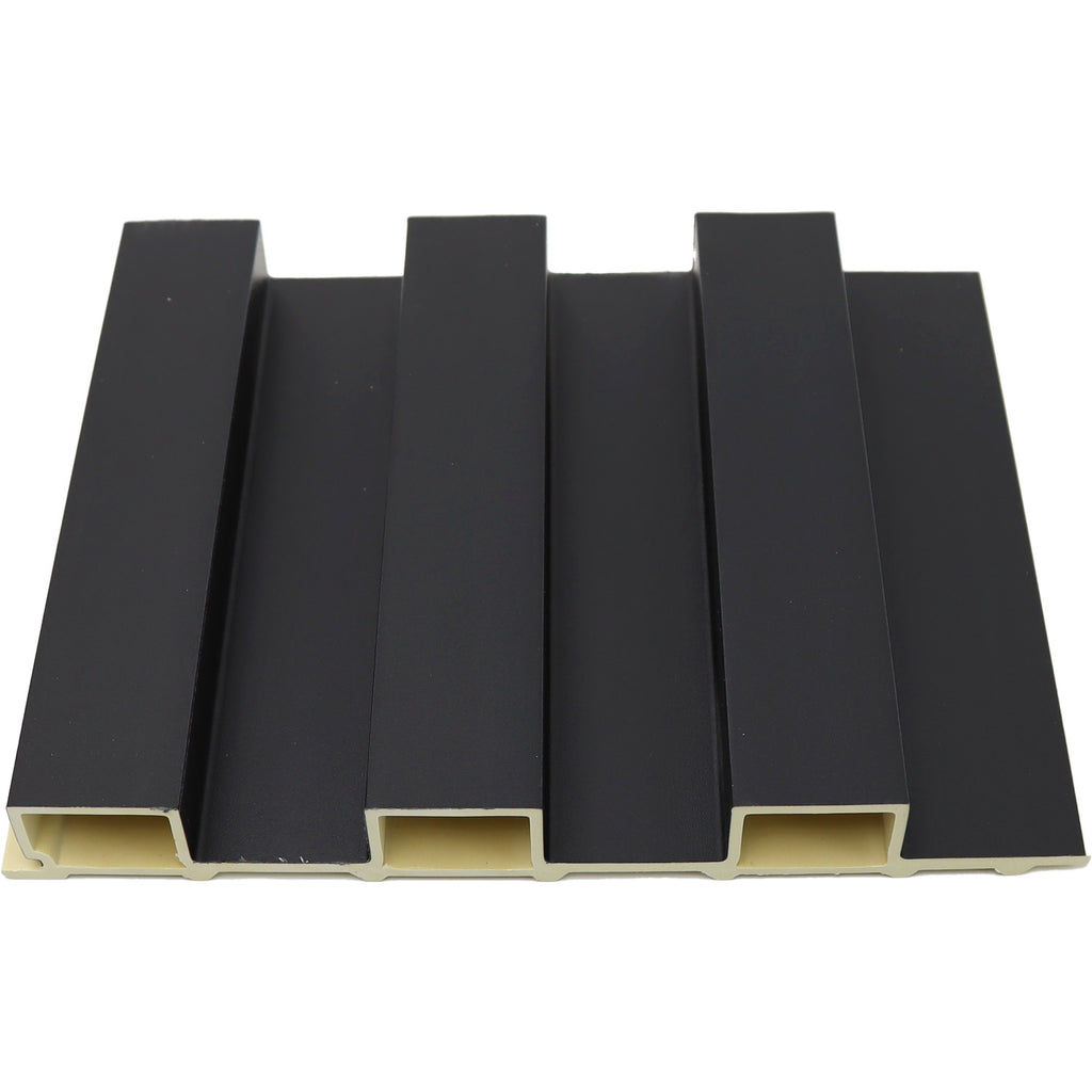 Lámina acanalada decorativa WPC Matt Black 25x195x2900 mm - Compuesta por madera y PVC resistente al calor, humedad, y arañazos.