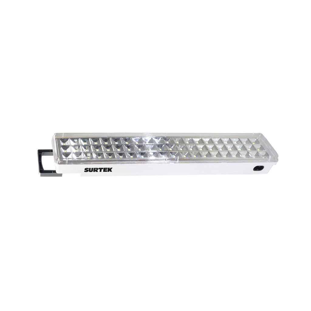 -Lámpara de emergencia 60 LED Surtek. -Recargable. 127v.. -Leds ultra brillantes.. -Hasta 15 horas de duración continua.. -Panel de control de intensidad y encendido.. -Práctica asa para traslado. -Distancia De Iluminación: 6 M