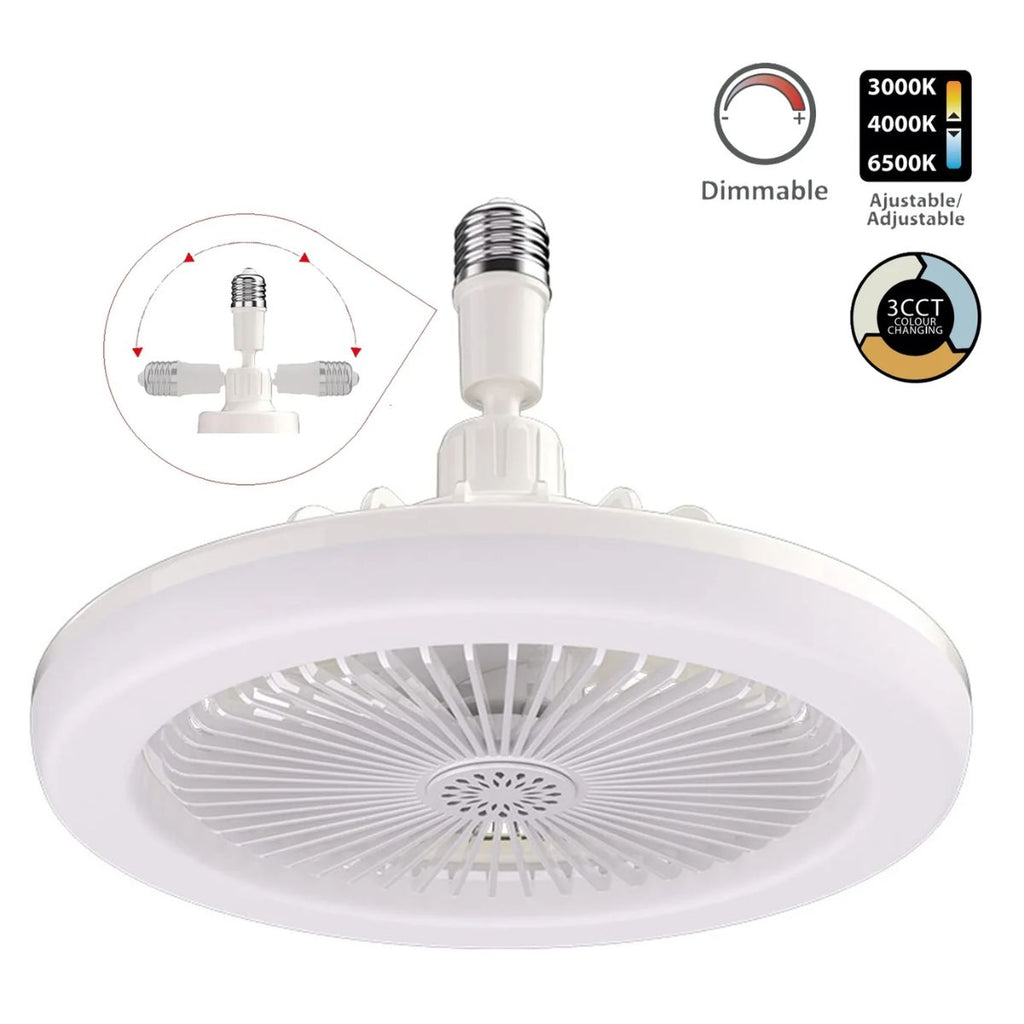 Lampara De Techo con Ventilador. Abanico LED Base E27 30W. Color Blanco. 3 velocidades. A control remoto.