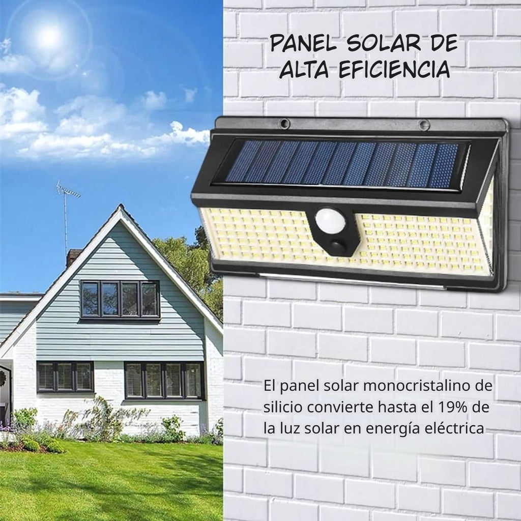 - Lámpara solar de 190 LEDs SMD con sensores de movimiento y luz, ideal para exteriores