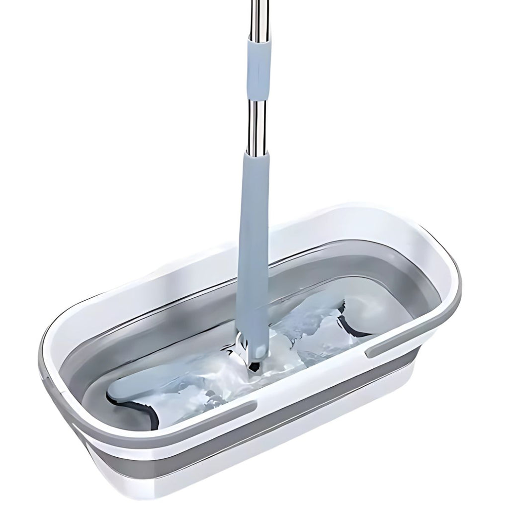Lampazo con mopa de microfibra giratorio 360°. Trapeador con auto escurrido. Incluye Cubo Plegable