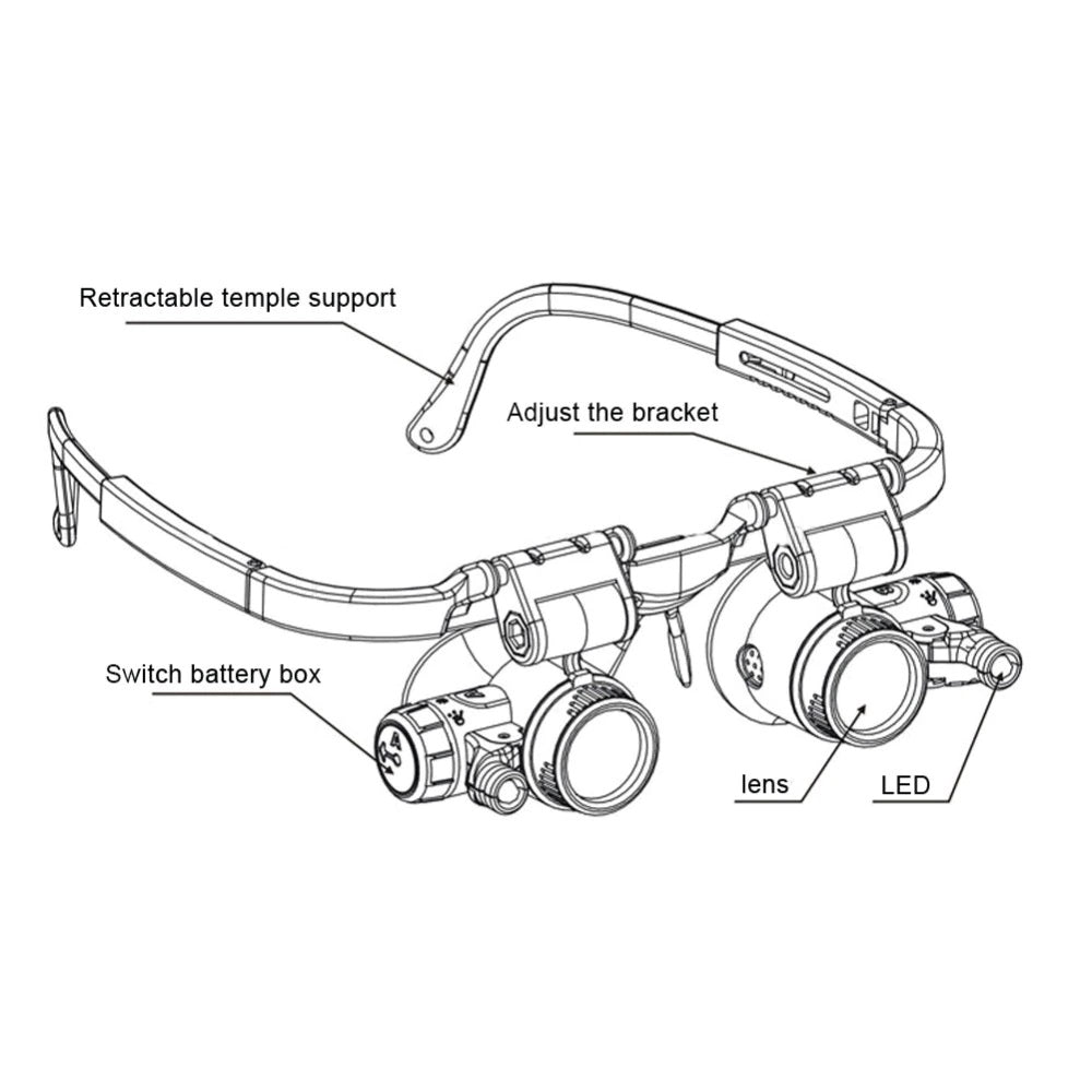 Gafas con lupa y luz led. Con 3 factores de amplificación, de 8X/15X/23X.