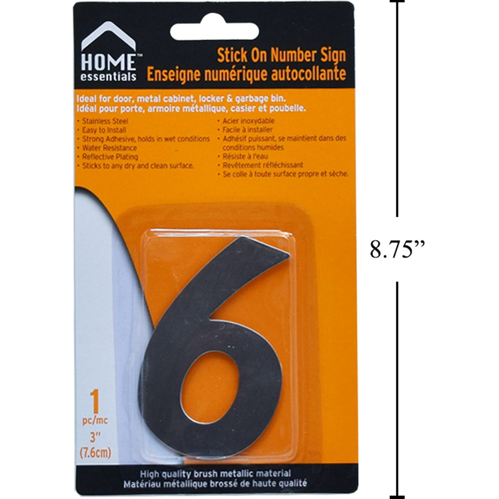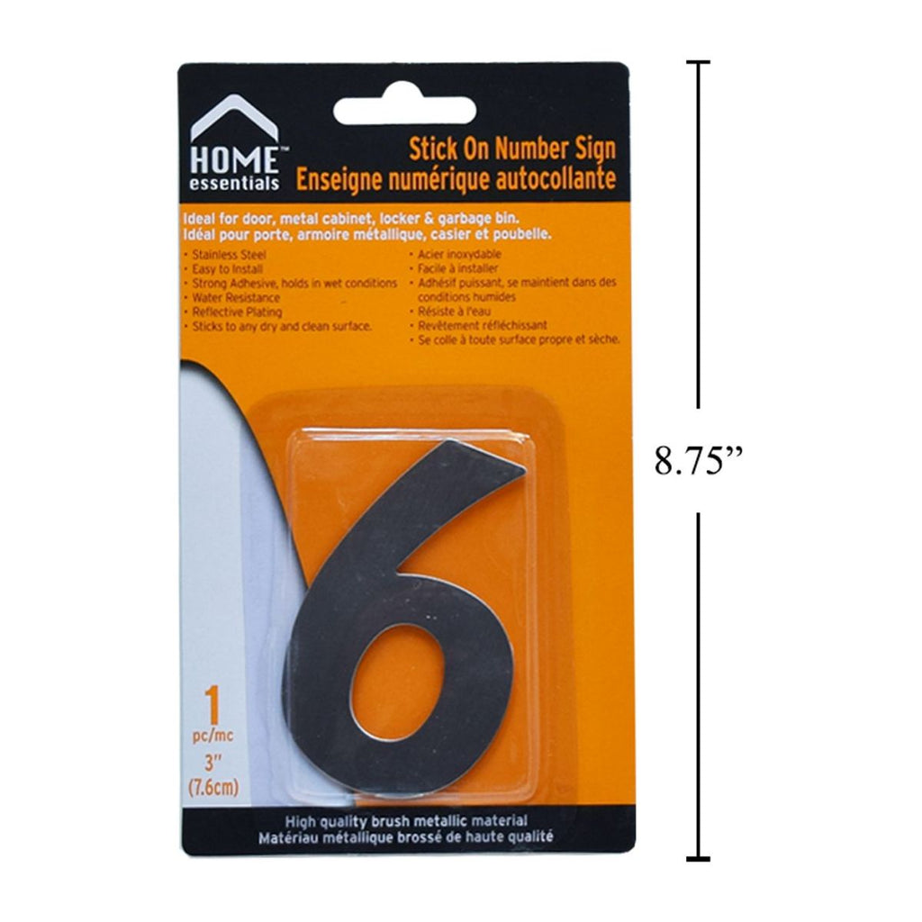 Letrero Señal numérica adhesiva de 3'' #6 Acero inoxidable