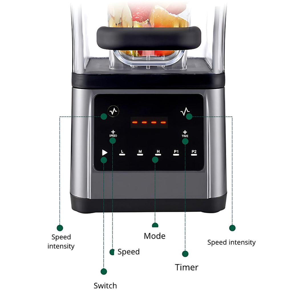 Licuadora de alta potencia 1.6L. De bajo ruido Máquina profesional de batidos y smoothies 1680W. Velocidad ajustable. Industrial bares