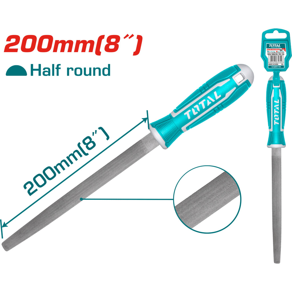 Lima media caña para acero. Largo 200mm. Acero T12. Gancho plástico.