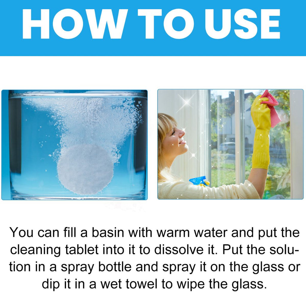 - Fácil preparación y aplicación: Disuelve una tableta en agua tibia, viértela en un atomizador y rocía sobre la superficie o limpia con un paño húmedo.