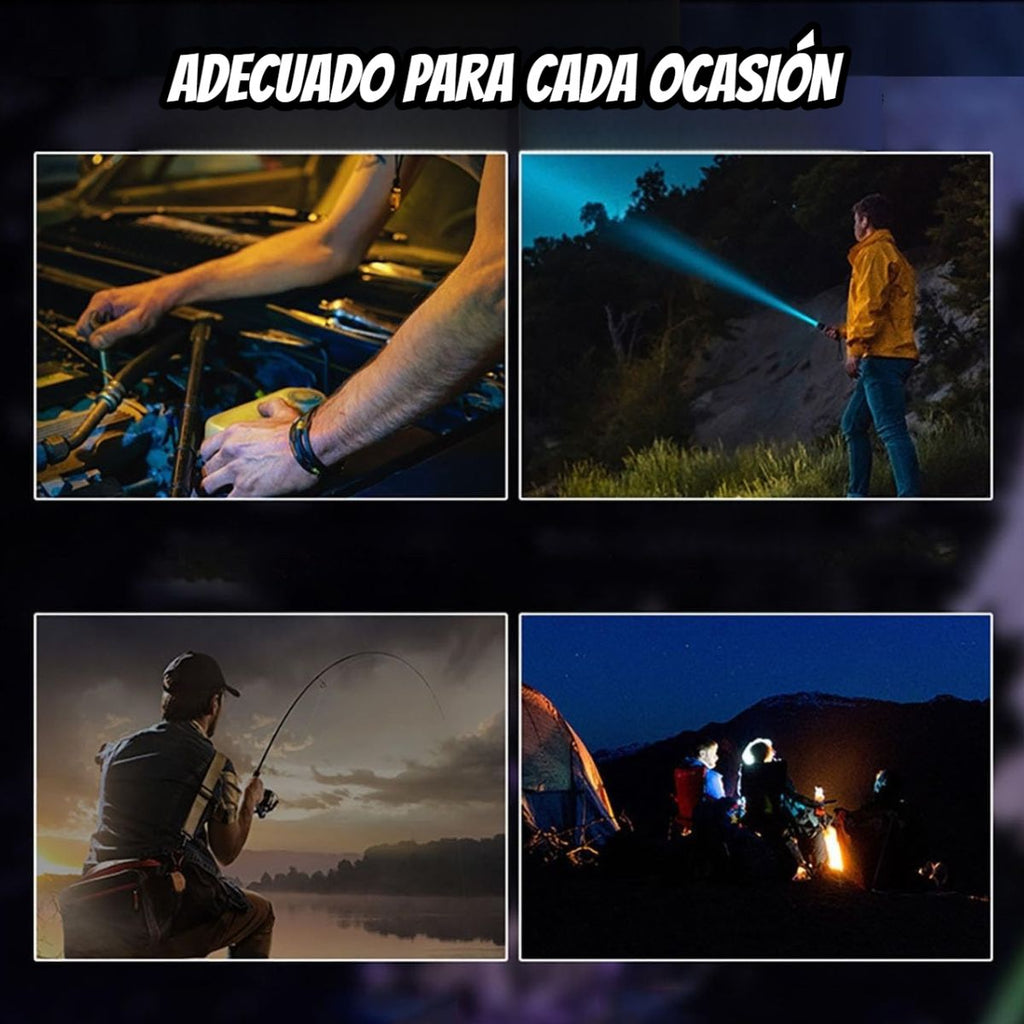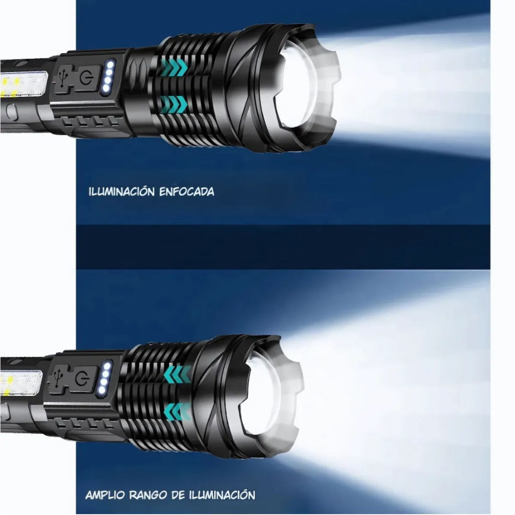Linterna LED Recargable Alta Potencia XH-P50 con Zoom Telescópico y Resistencia al Agua.