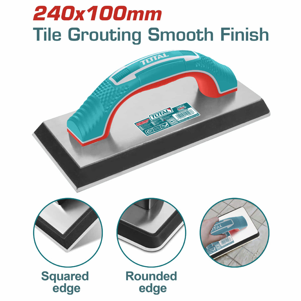 Llana de Goma para Lechada de 240 mmx X 100 mm. Espesor de la EVA 19 mm. Plato base de Aluminio. Mango de PP. Plato Thickness de Aluminio.