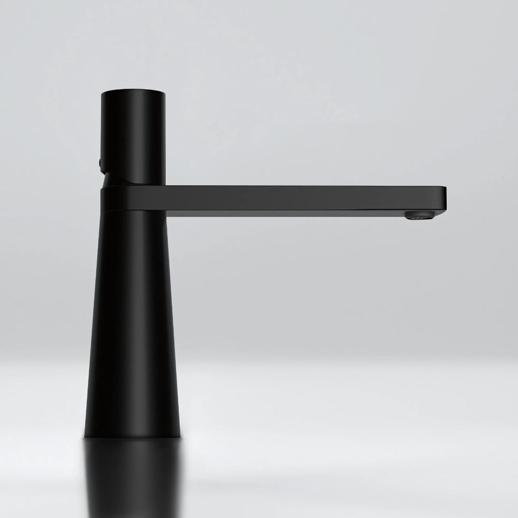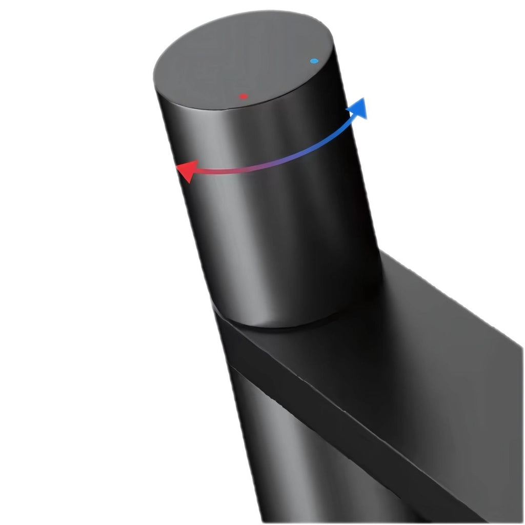 Llave De Lavamanos Individual. Grifo De Lavabo Color Negro. Pluma. Modelo bajo.