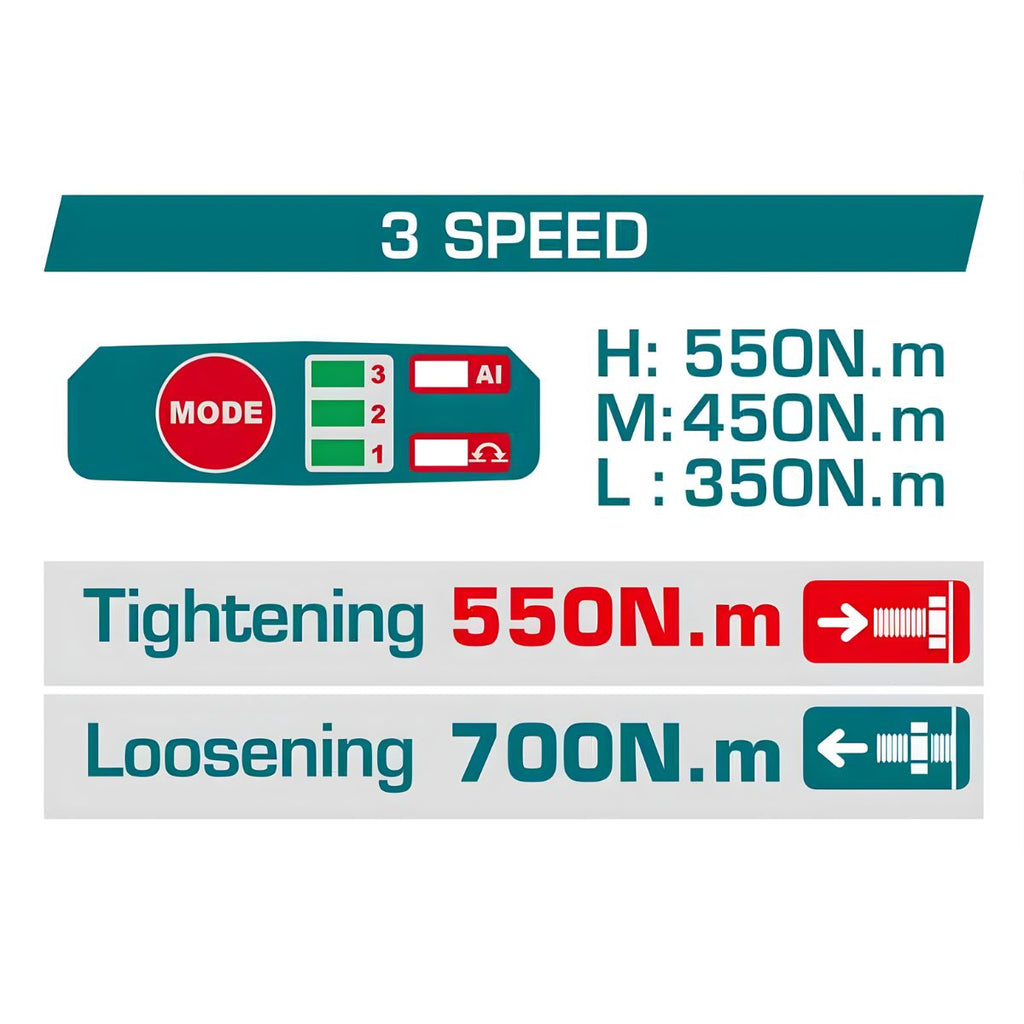 Llave de Impacto Inalámbrica 20V – Motor sin Escobillas – 1/2″ – 550 Nm